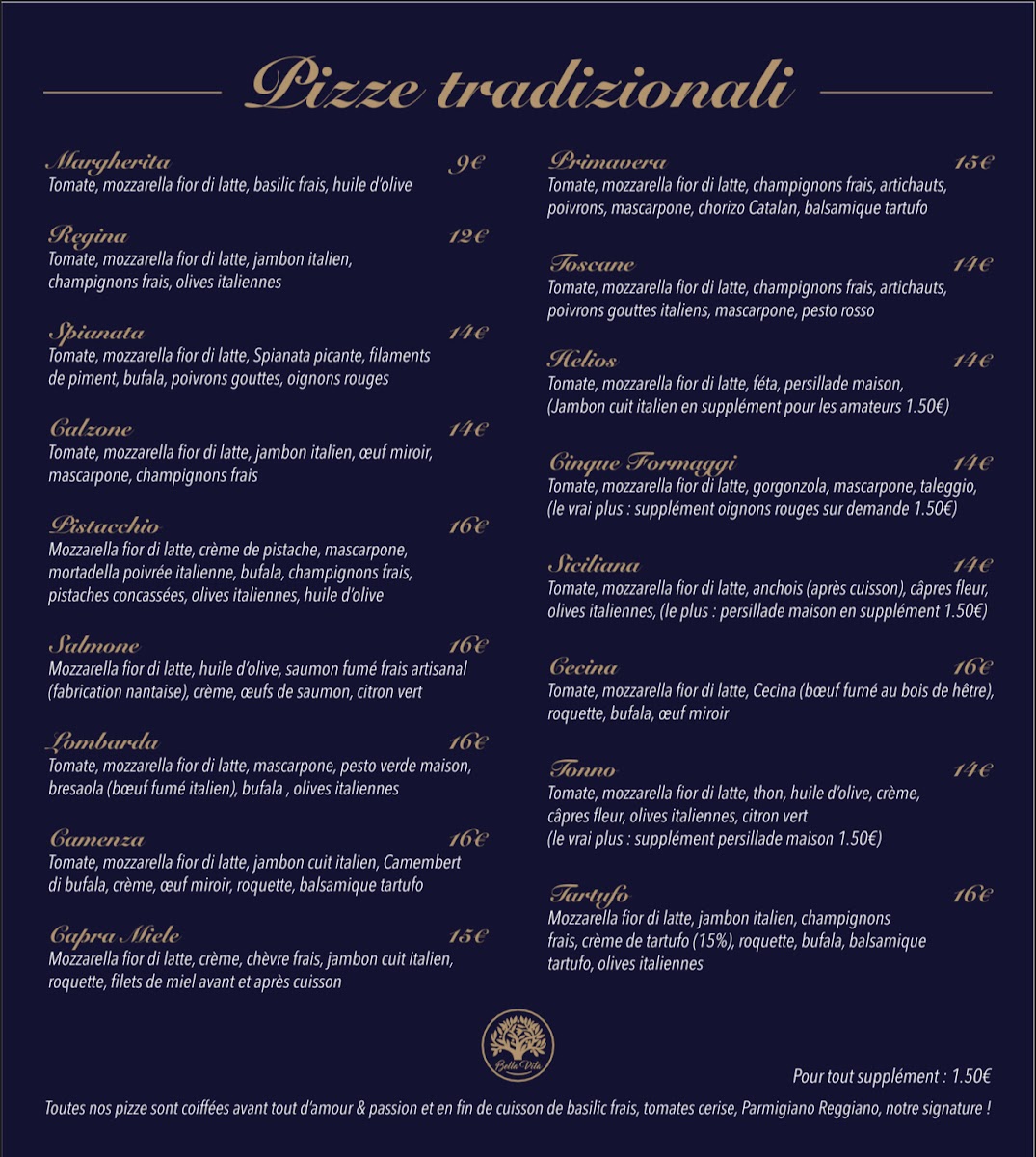Pizzeria Bella Vita Menu